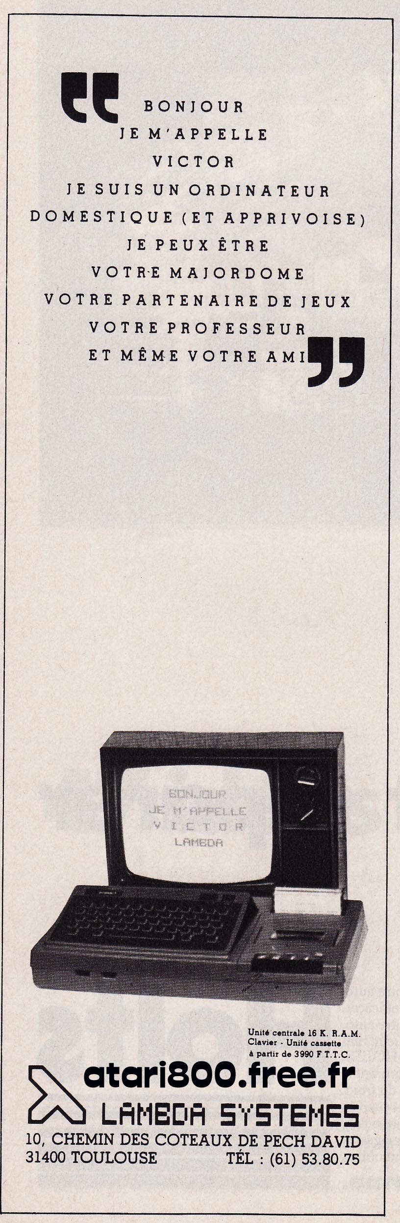 car comme j'ai récupéré pas mal de bécanes, j'en ai trouvé des trucs soit à l'intérieur ou soit dans les cartons accompagnant les bestioles, je vais commencer avec la première pub concernant victor lambda qui est devenu ensuite hector. A ce soir