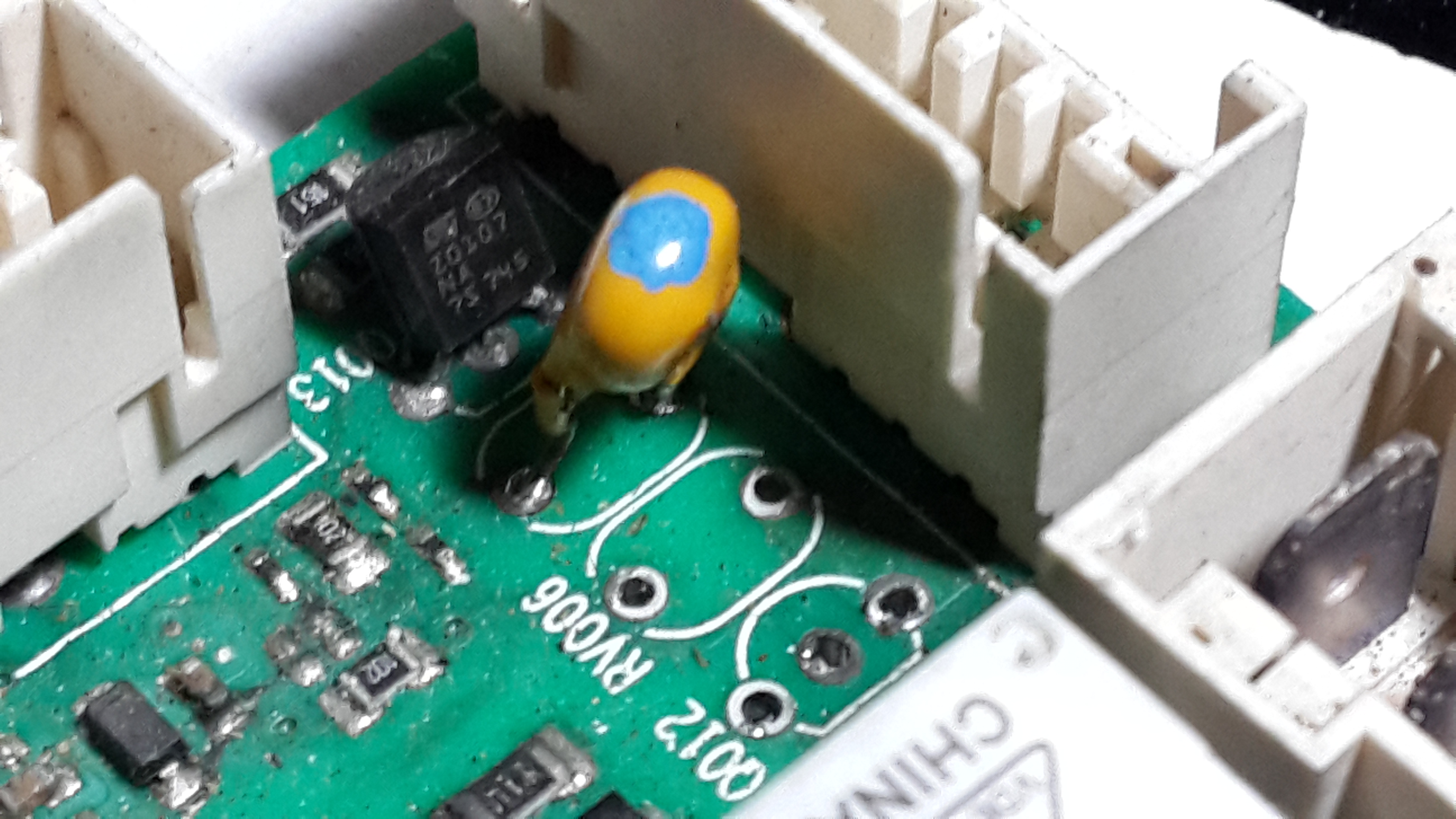 — Autre problème, on me donne un lave-vaisselle Beko en panne… En le testant, je constatai qu'il ne prend pas d'eau… Après avoir testé l'électrovanne d'arrivée d'eau et vu qu'elle était OK, je démontai le circuit électronique de commande… Immédiatement, je vis un composant “explosé” :