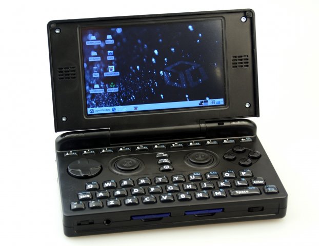 Pour rappel, côté caractéristiques, on a un processeur Texas Instruments OMAP3530 avec 256Mo de RAM et GPU PowerVR SGX530, un écran tactile de 4,3″ avec une résolution de 800×480 et 16,7 millions de couleurs, de l’USB 2.0 Host, du Bluetooth, du WiFi b/g, un double port SD/SDHC, une sortie vidéo, un clavier complet de 43 touches, deux sticks analogiques, une sortie TV, une autonomie de 10h, le tout dans un boîtier légèrement plus gros qu’une Nintendo DS Fat (140×83.4×27.5mm pour 335g) et tournant sous Linux.