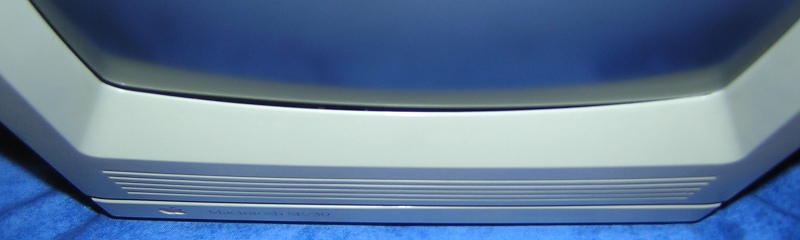 Et pour ne rien arranger, il n'y a rien pour protéger la carte mère sous le SE/30. Heureusement, la présence de deux pièces métalliques aux coins arrières de la machines permet de poser le SE/30 sans contraintes sur la carte mère, du moment que le support est plan et dur.