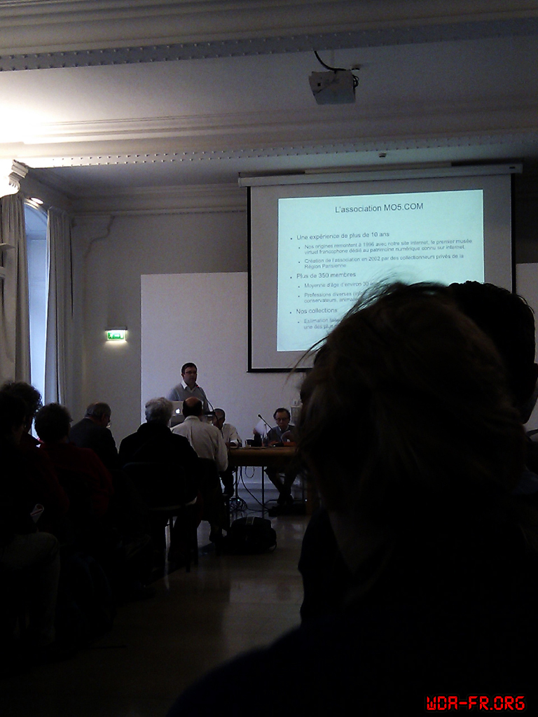 Comme toujours, l'attention retombe vite au moment de la digestion, et la présentation de Philippe et de MO5.com, prévue pour 14h15, ne débute réellement qu'a 14h35, et ce pour finir à 14h40... Dommage !