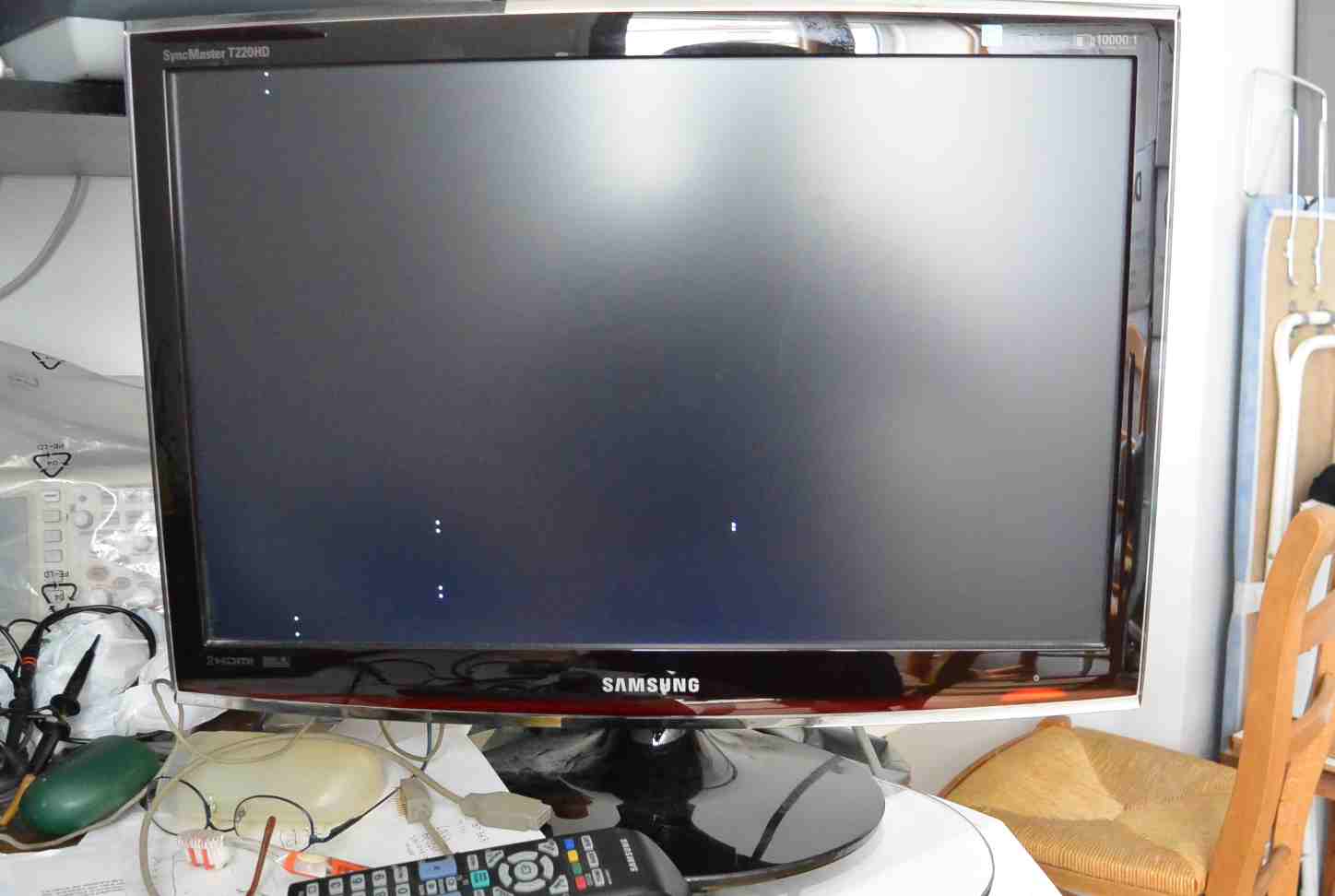 Nouvelle mise sous tension, ha... j'ai un peu plus de grand n'importe quoi à l'écran, des points des traits, le clavier ne réagit pas et il n'y a pas de bip à l'allumage.