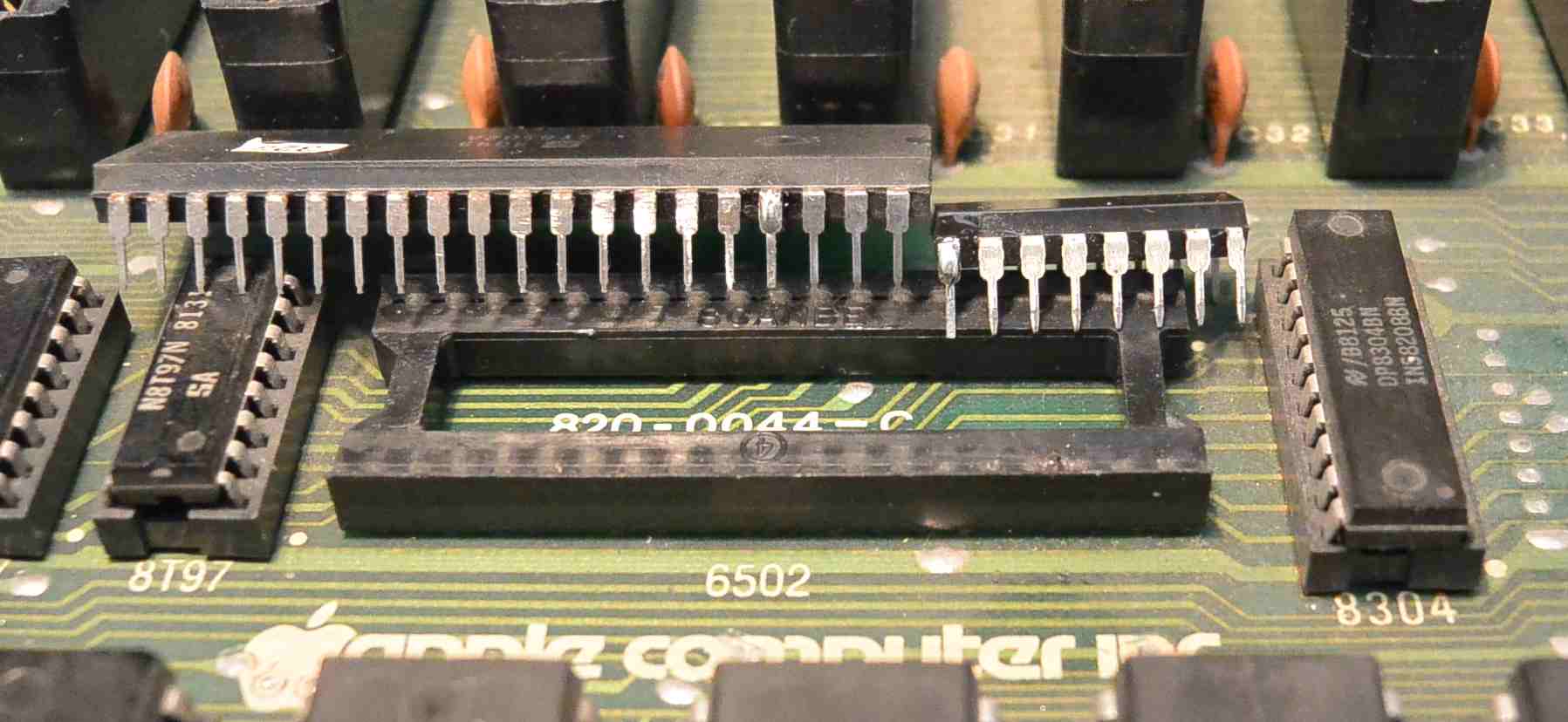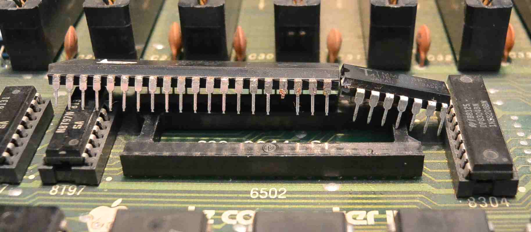 Comme par hasard la patte comporte un peu de rouille, j'avoue que si j'ai bien enlevé et retiré tous les circuits il n'y a que le 6502 que je n'avais pas retiré, je l'avais juste légèrement soulevé puis ré-enfoncer.