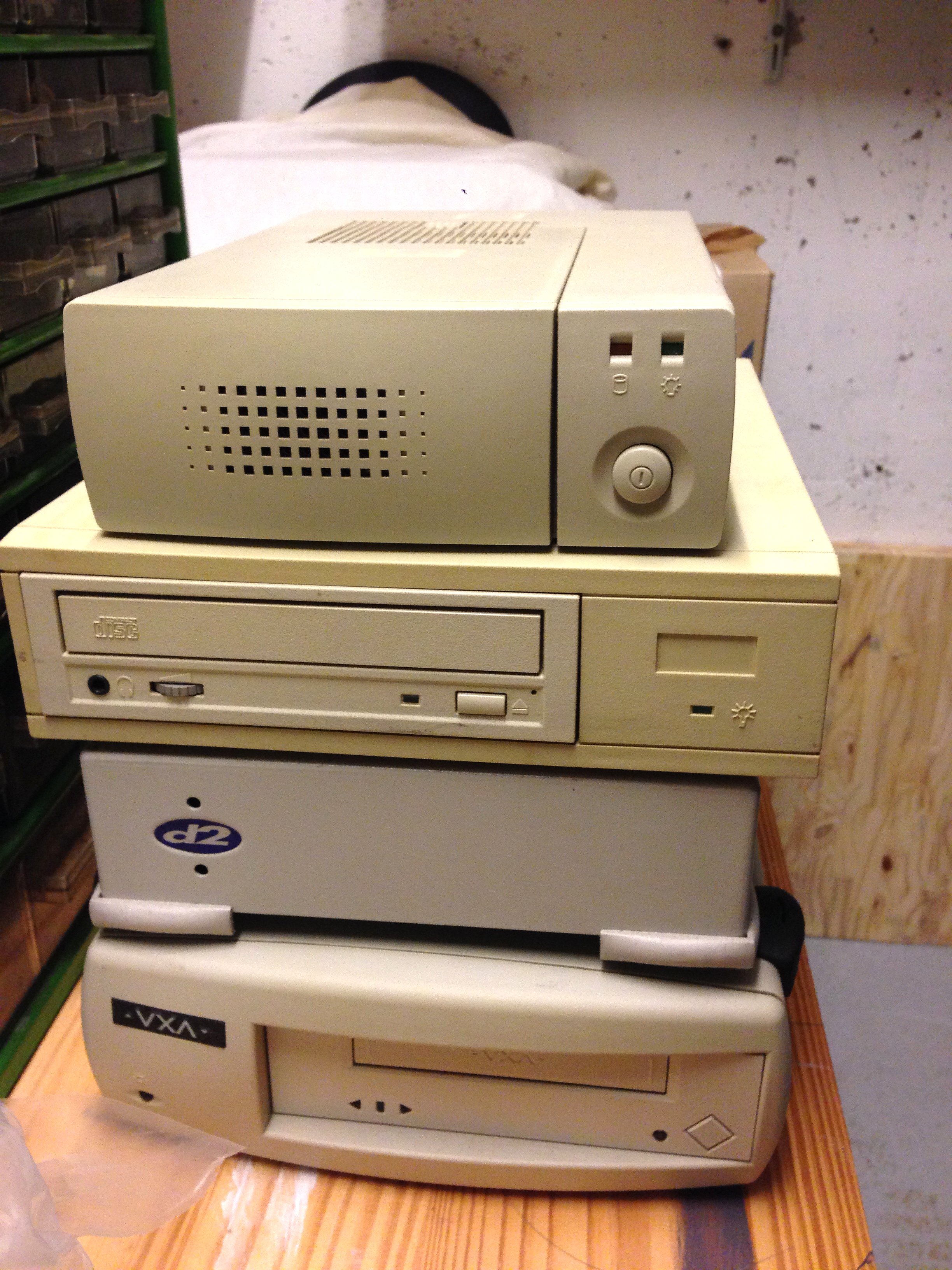 - 2 Disques durs, 1 CD et 1 DAT SCSI, chacun dans son boitier externe avec alim. :