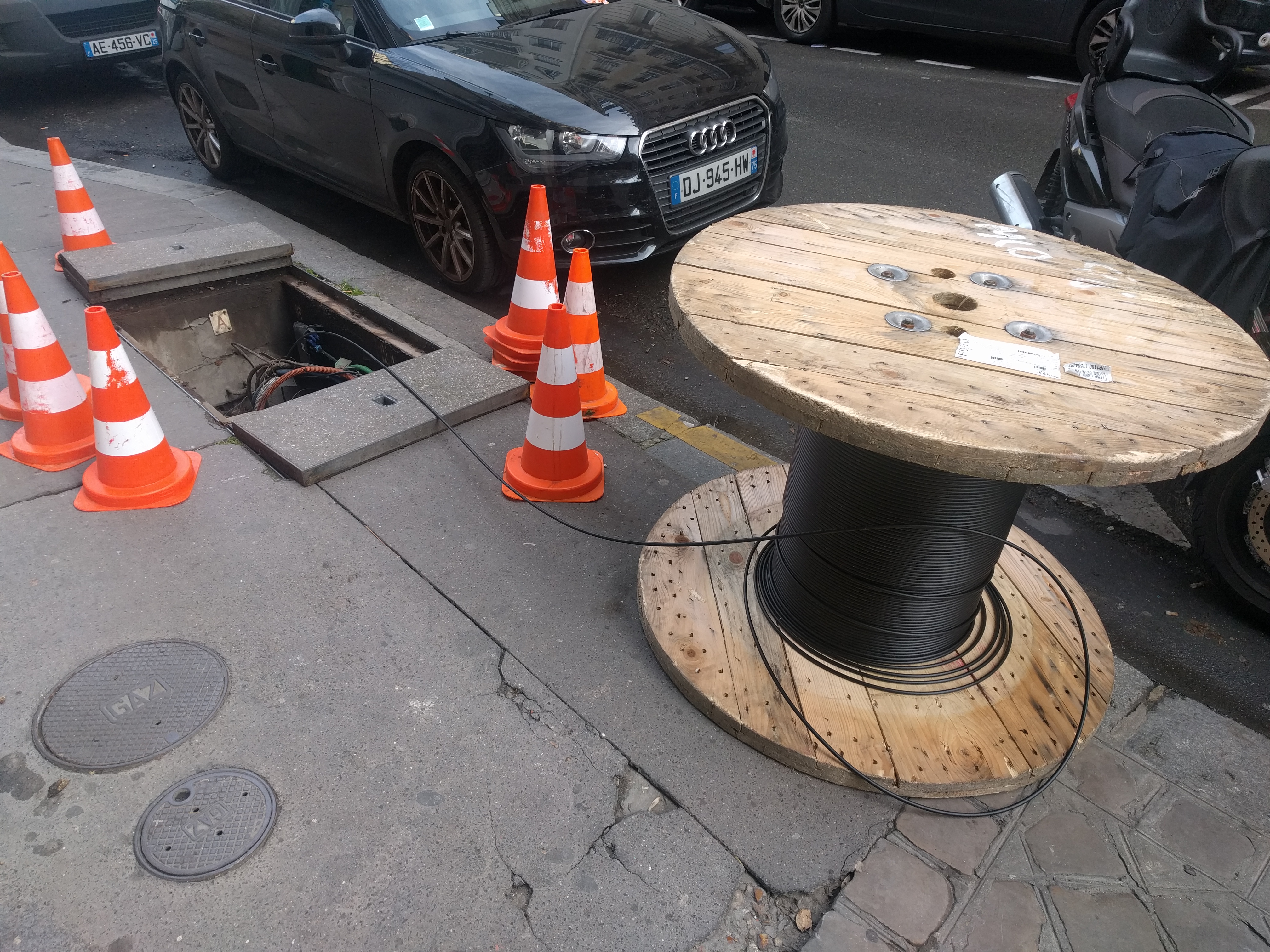 Ils en profitent pour retirer la vieille Bifibre jamais raccordée (depuis 2009), et la remplacer par une Multifibre (Quadrifibre).
