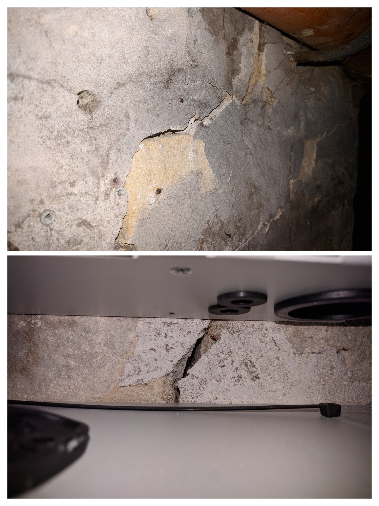 Il me dit ensuite que les prestataires Orange prendront RdV avec moi pour la « réalisation », et a ensuite fait un ensemble de photos des fourreaux d’arrivée, des voûtes de la cave et du PMI.