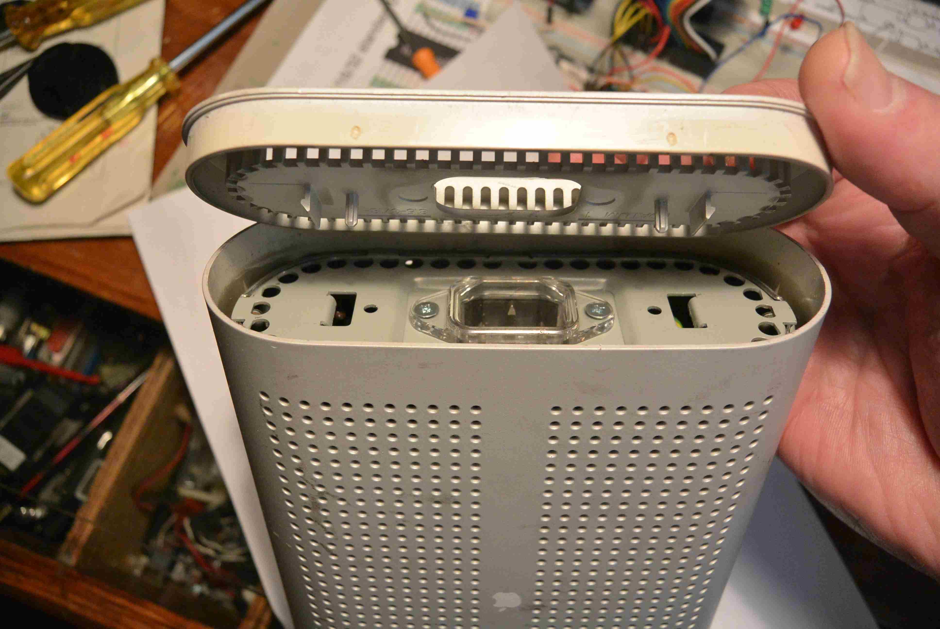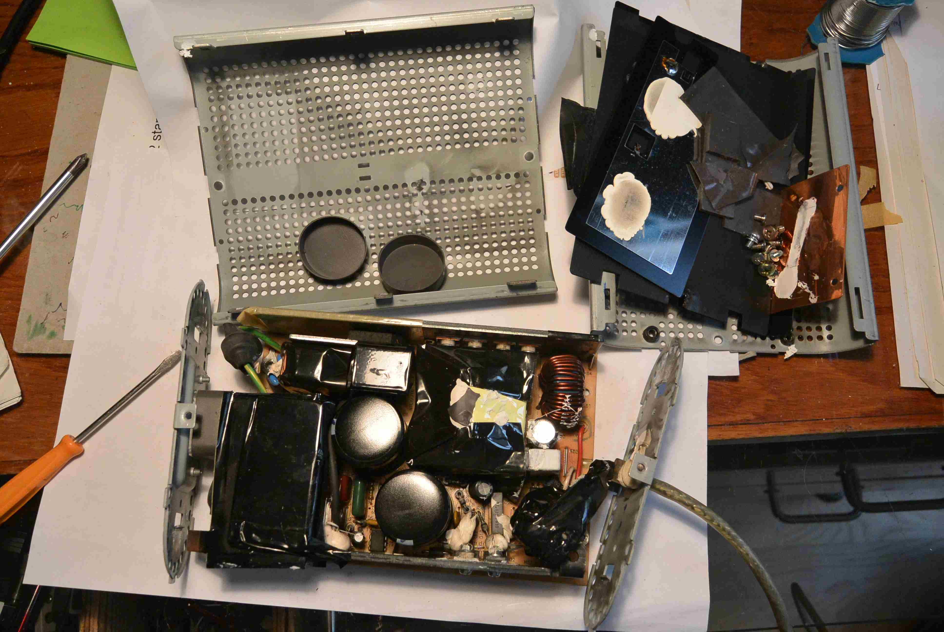 Alors celle là elle m'a donné des soucis, j'ai passé plus d'une heure a trouver comment elle pouvait s'ouvrir sans tout casser. A priori personne n'a encore réussi ou essayé d'ouvrir cette alimentation, on ne trouve rien sur le Web.