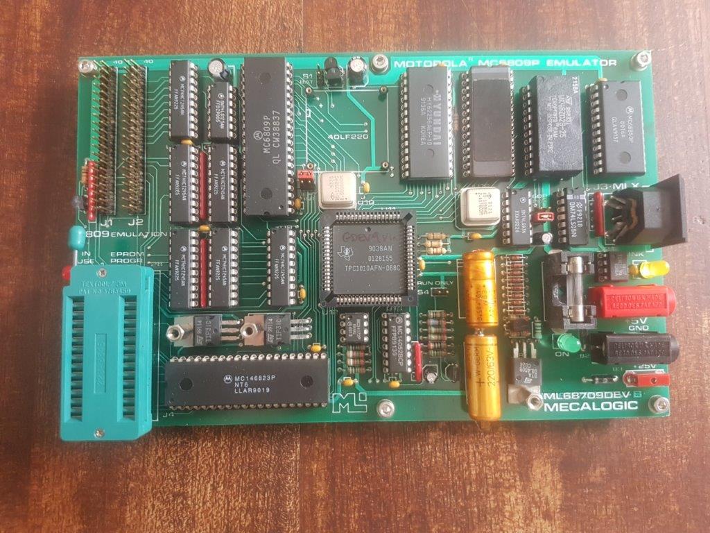Référence MECALOGIC : ML68709DEV-B si si j’ai bien écris 68709 ils ont probablement voulu garder le même type de référence pour leur série de kit de développement ! (mais sur la carte il y a bien écrit aussi 6809 émulation)