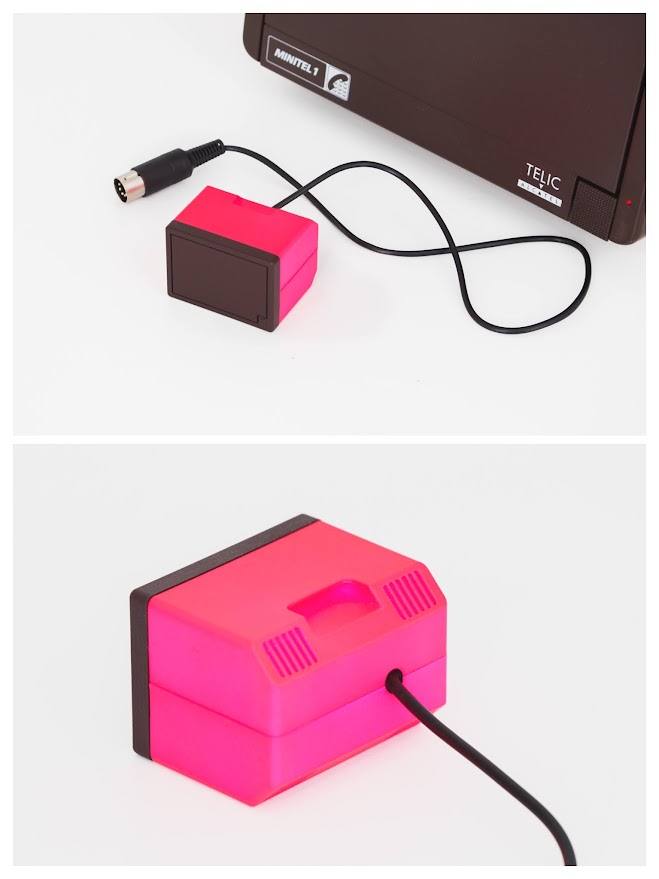 En gros, c'est un ESP32 (programmé via Arduino) pluggé en Micro-USB sur le DIN du Minitel, et qui permet d'hoster quelques aspirations télématiques de l'époque, le tout attaquable via le WiFi.