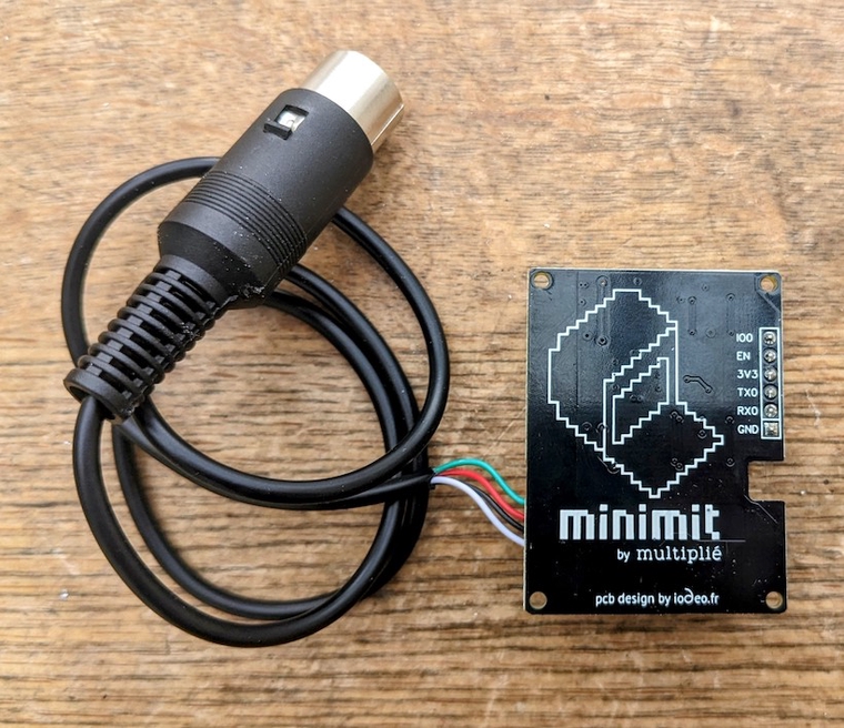 Le MiniMit contient une carte électronique qui se connecte à un réseau WiFi d’un côté et à la prise DIN du Minitel de l’autre, permettant ainsi de créer une passerelle entre les anciennes nouvelles technologies et les nouvelles pas encore anciennes.