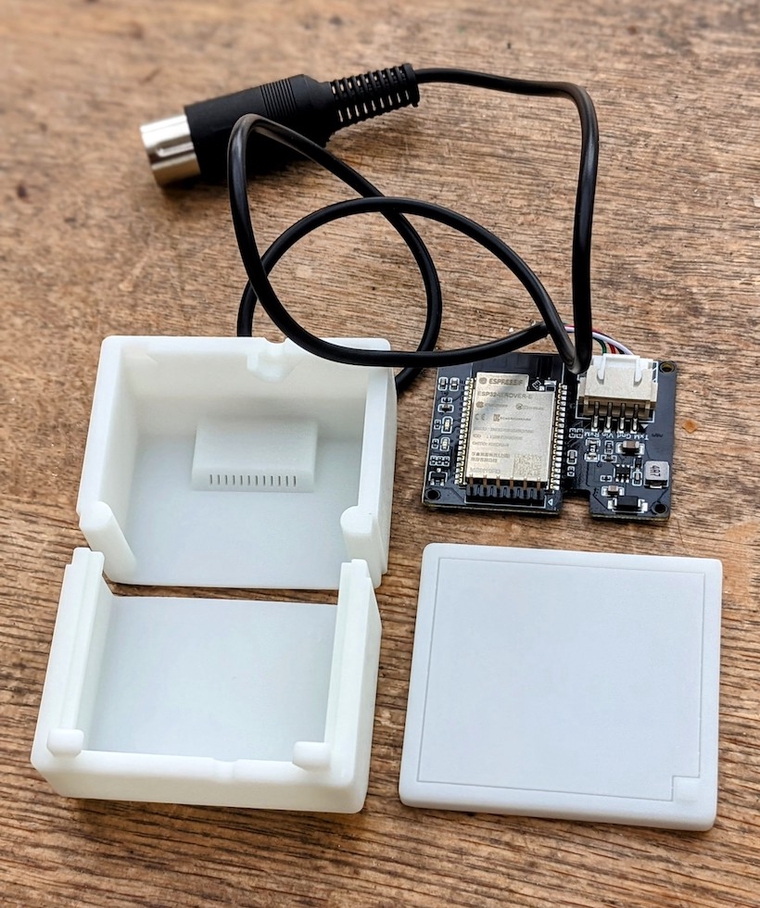 Dans le cas de ce prototype "Presse", il s'agit d'une PCB tout-en-un avec une cosse DIN soudée directement à l'arrière, fabriquée par Louis H.