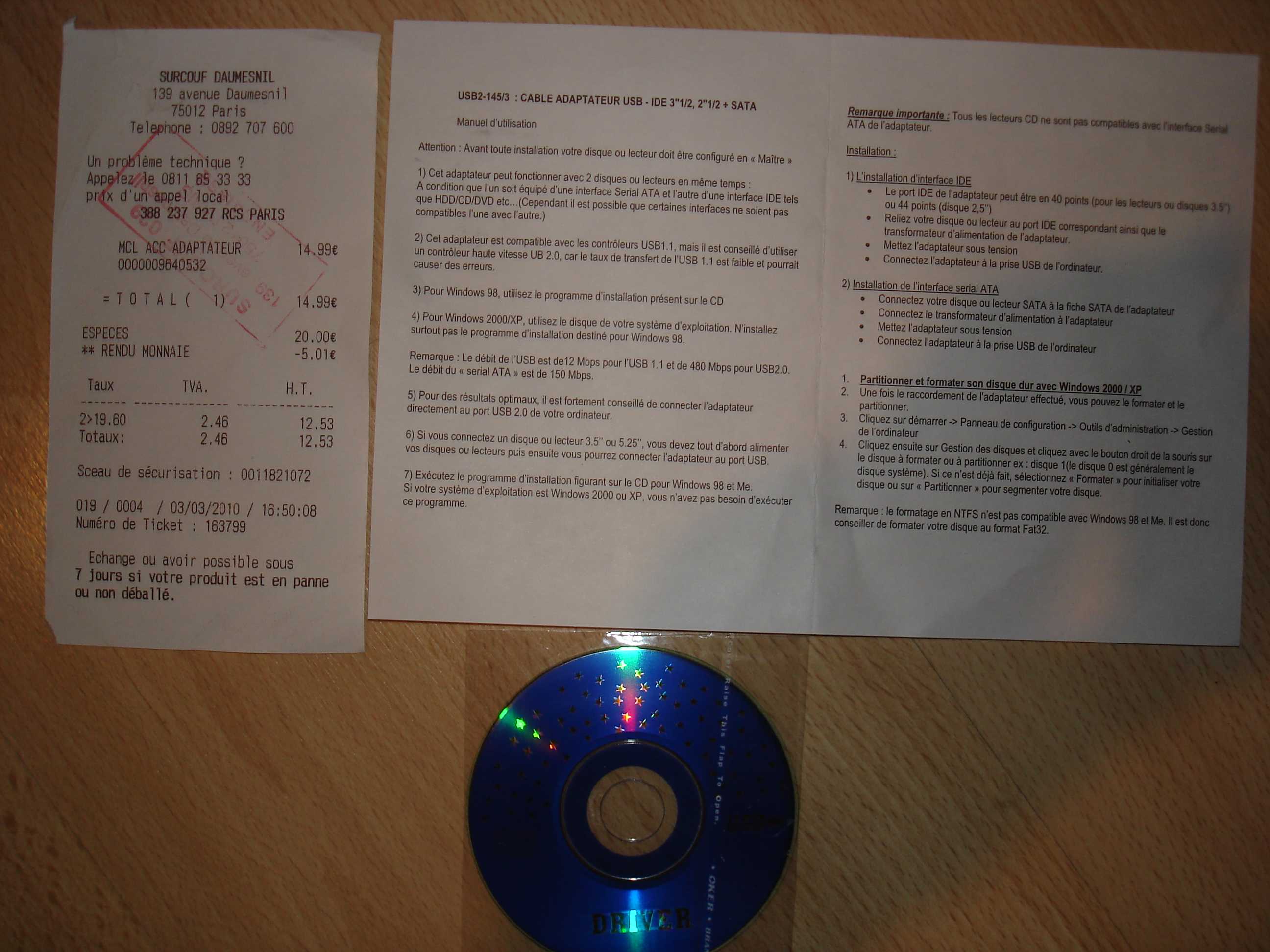 Re: [Test] - DANGER Adaptateur USB vers SATA/IDE