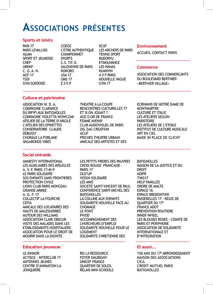Flyer du Forum 2010 des Associations du XVIIème ardt. de Paris - Liste des participants.