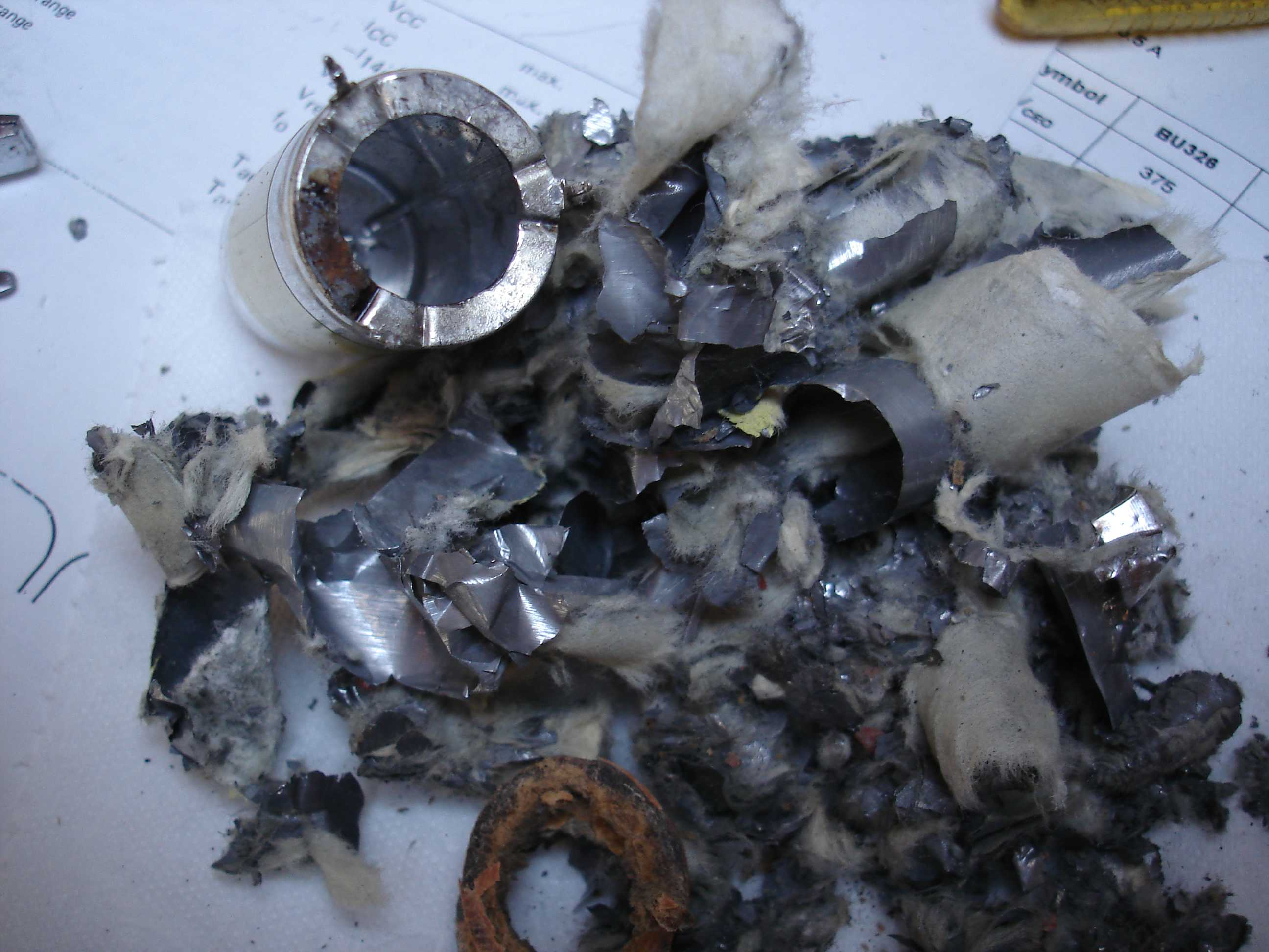 Et 5 minutes plus tard... Quel bazar à l'intérieur d'un condensateur