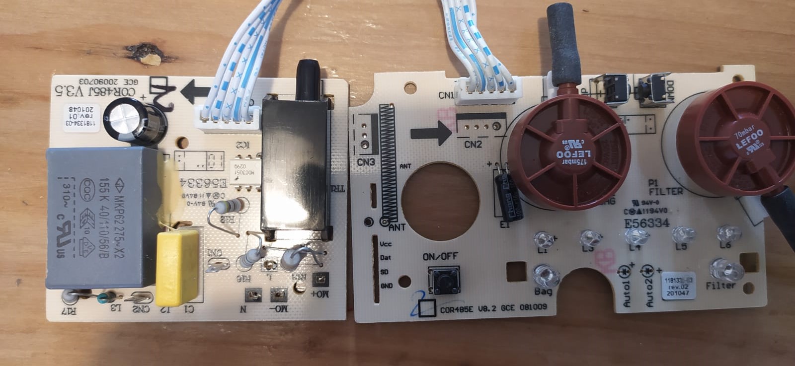 Petit aperçu des cartes électroniques de l'aspirateur, pour un simple variateur de puissance et avertisseur de sac plein vous avouerez qu'on peut difficilement faire plus compliqué