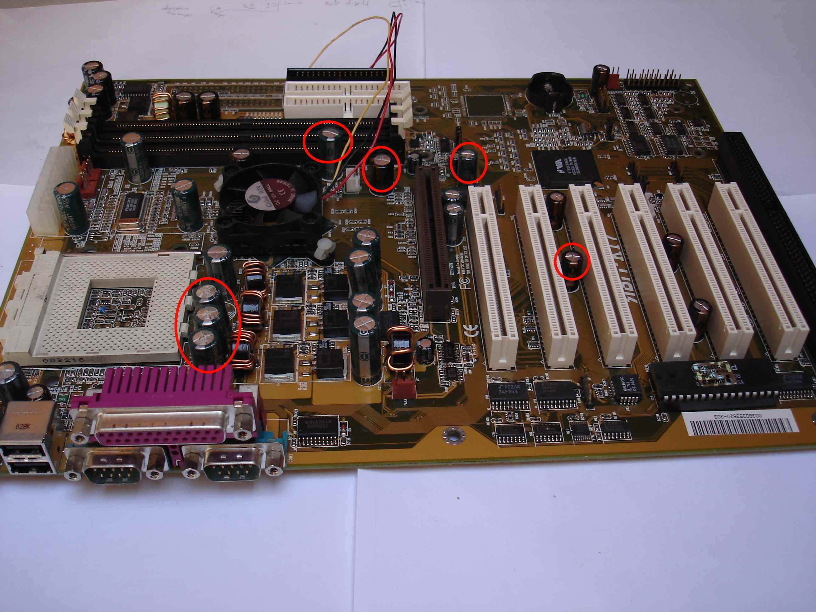 Les condensateurs entourés de rouge sont HS