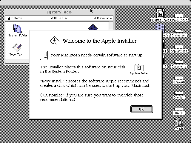 1) faire monter les images disques d'installation du système sur le bureau (avec DiskCopy version 6.x)