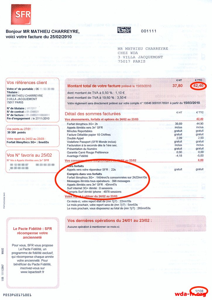 Pour les incrédules, voici ma facture (première page) de Juillet 2009 : (Regardez surtout les détails que j'ai entourés).