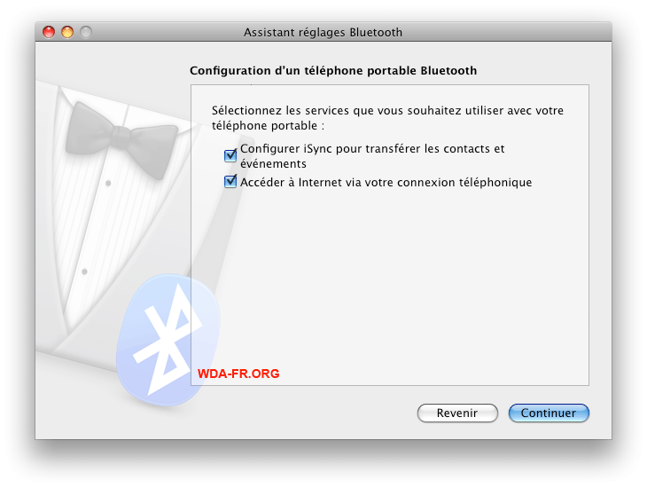 Avant toute chose, il vous faut associer & jumeler votre mobile à votre mac, via la connexion BlueTooth de celui-ci. Je passe les détails, car je suppose que si vous avez un Smartphone comme le Nokia 95 et un ordinateur Mac BlueTooth, le jumelage de ces deux zozos doit être fait depuis longtemps... Veillez juste à cocher la case "Accéder à Internet via votre connexion téléphonique"