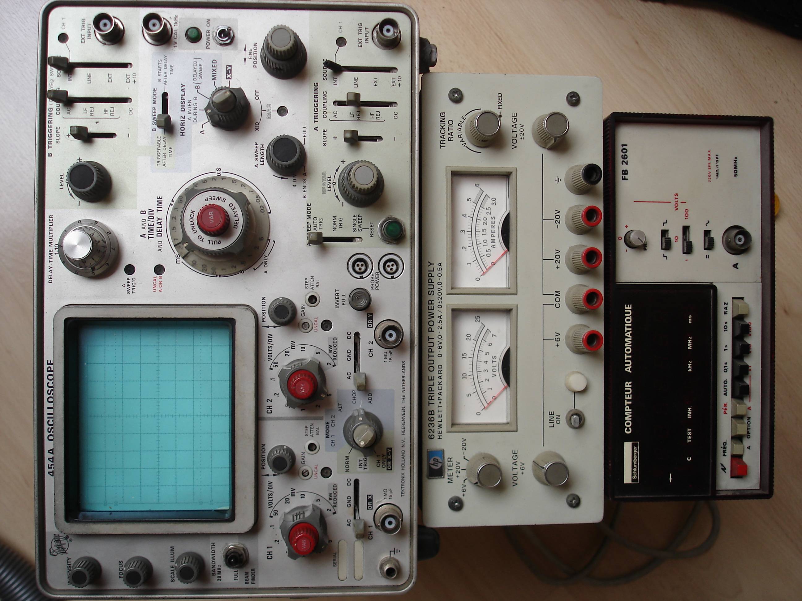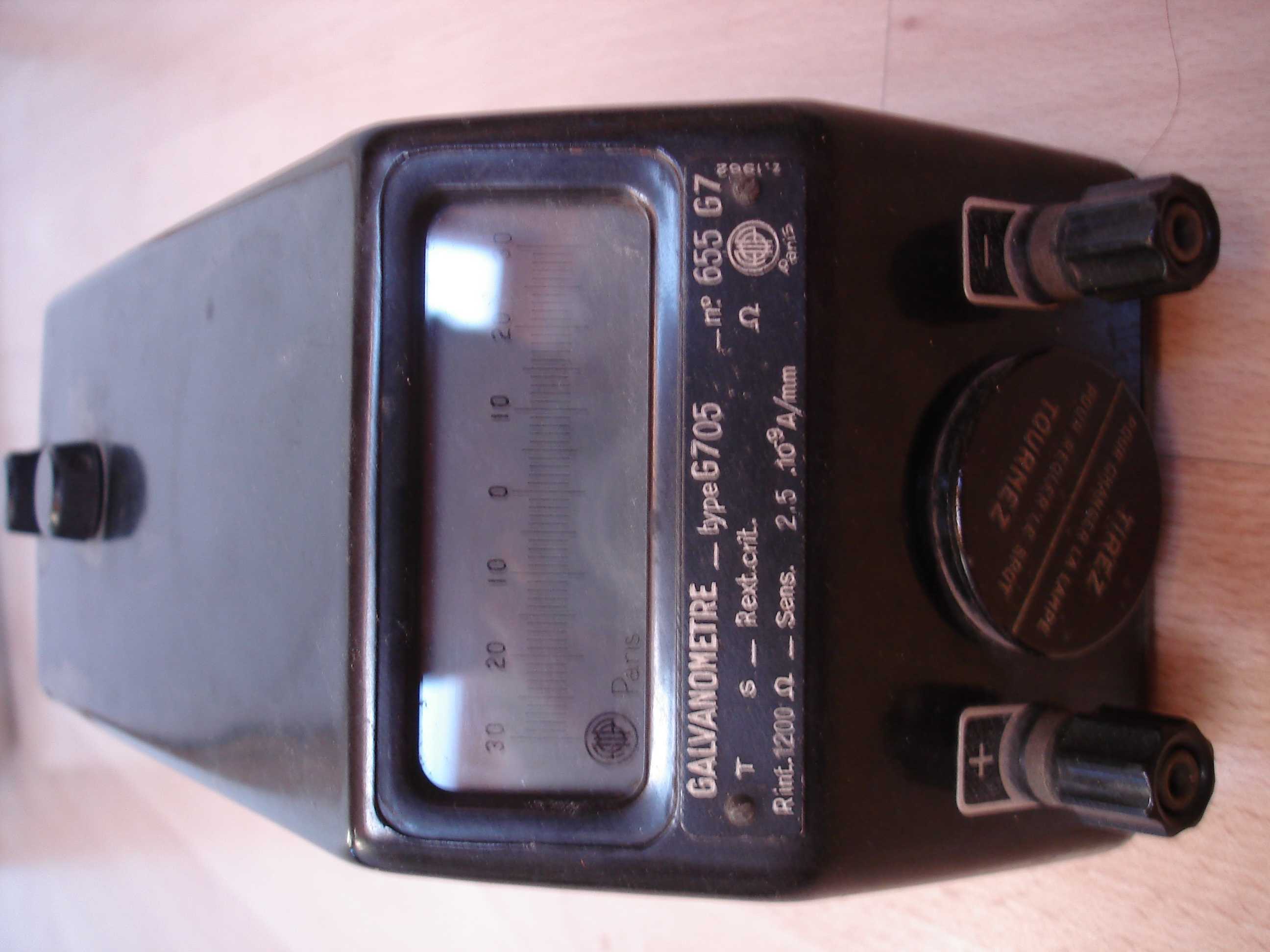 Pour info, l'oscilloscope Tektronix date de 1972 et il fonctionne toujours aussi bien ! Un galvanomètre à miroir AOIP G705 des années 60, notez la sensibilité extrème qui est de 2,5 NANO ampère par division !