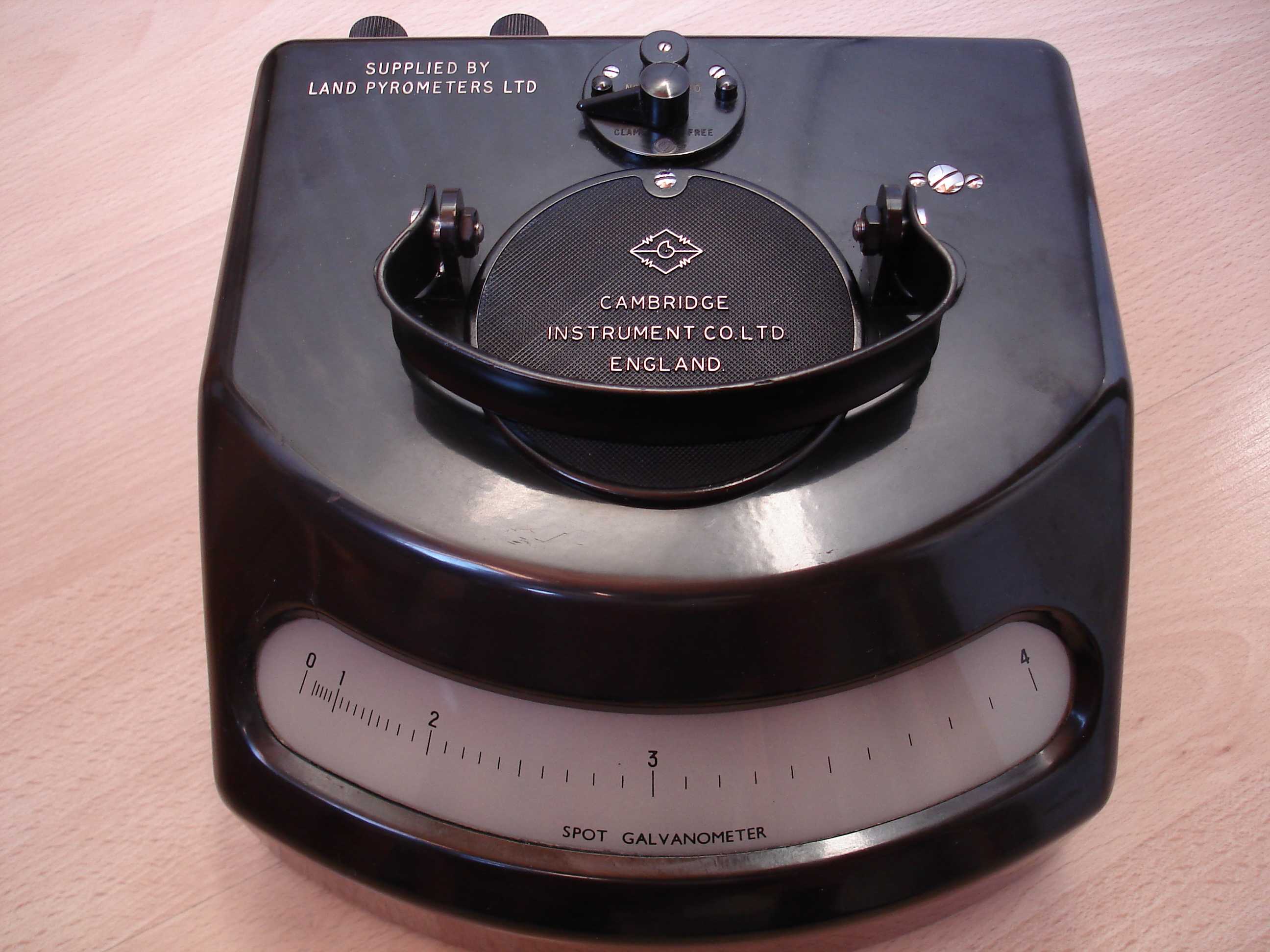 Une lampe basse tension éclaire un petit miroir solidaire de l'équipement mobile et projette une ligne lumineuse sur l'e cadran. Sachant que le miroir est à 10 cm du cadran une déviation de quelques dixièmes de millimétre est amplifiée par la distance, le seul soucis est que ce type d'appareil est très sensible aux vibrations et qu'il doit être posé sur une surface inerte et non pas sur une simple table posé sur un plancher.