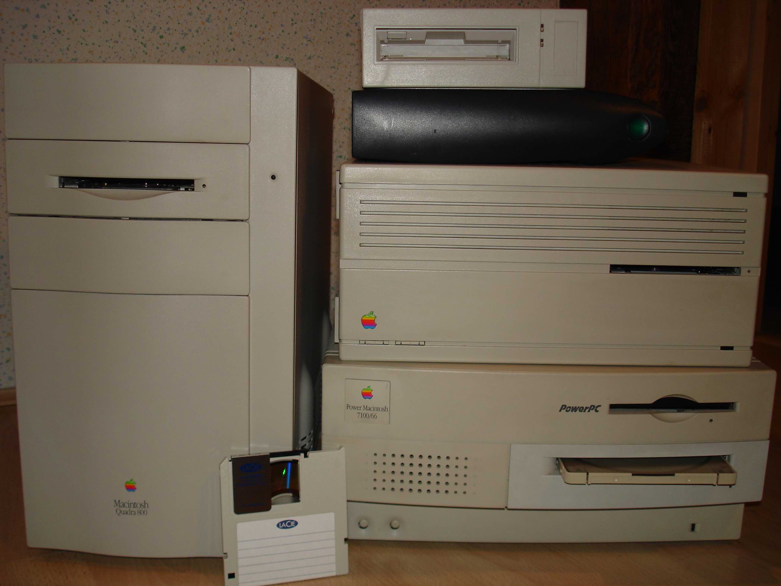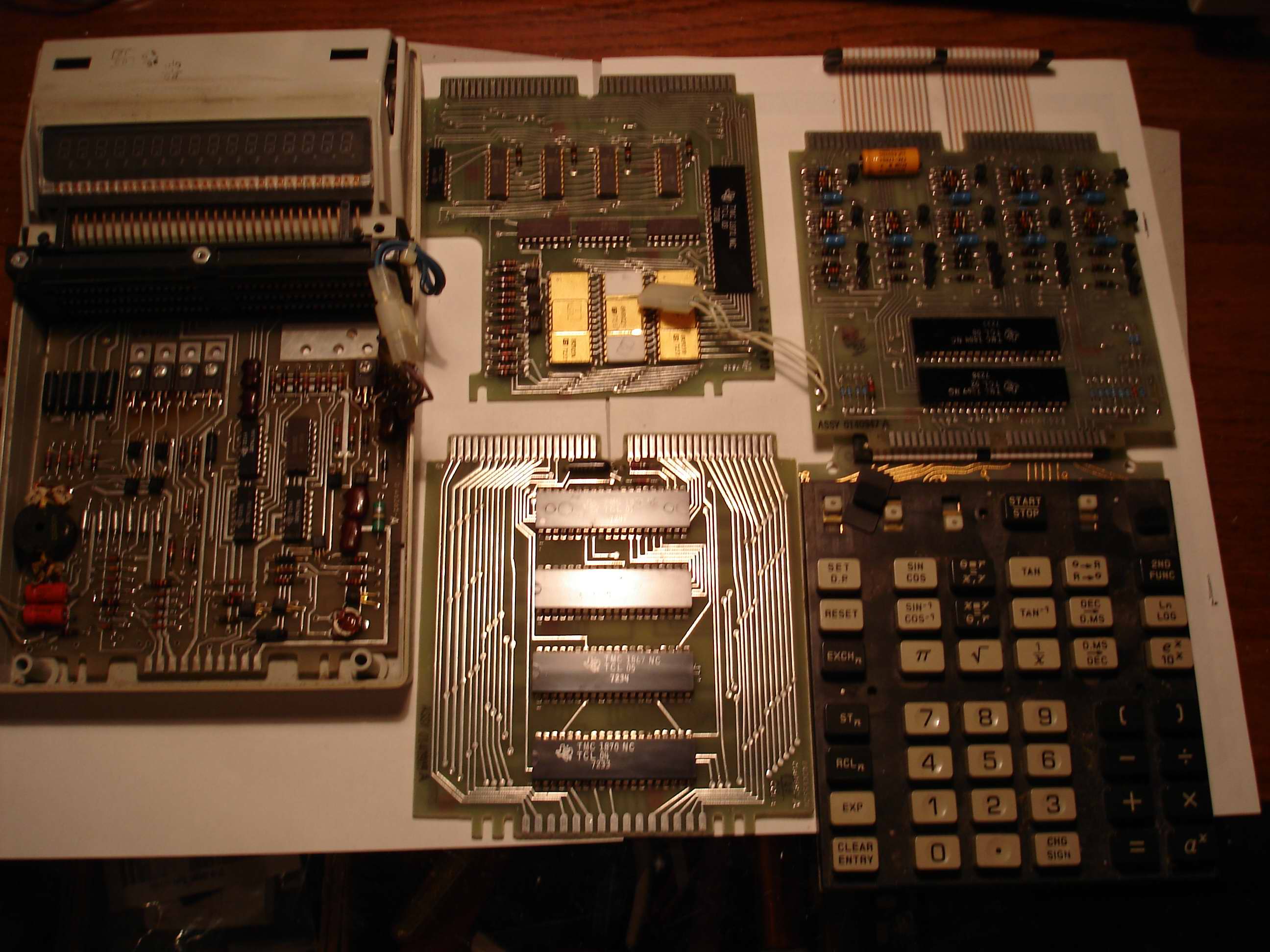 Eh oui... l'informatique en ce temps là coutait la peau des fesses. Un Powermac 7100/66, un Mac II Ci transformé en Quadra 650, un Quadra 800 (merci à Mr PRUVOST pour ce don généreux !), un disque D2 (design Starck ), un magnéto-optique 650 et sa cartouche. Ma dernière acquisition tout droit sortie d'une poubelle, une magnifique calculatrice programmable de 1973 Compucorp 322G. Le seul souci est qu'elle ne fonctionne pas d'où un démontage en règle, on peut admirer au passage la fabrication identique à celle d'un ordinateur - des cartes connectées entre elles par l'intermédiaire d'un fond de panier ! Après remontage, le problème est identique, la calculatrice affiche toujours la même chose, bon tant pis... mais c'est quand même un bel objet !