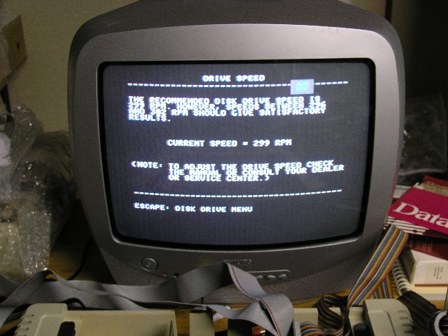 Maintenant on règle la vitesse. Tant qu'à faire, passer un coup de coton tige alcoolisé sur la courroie et le volant d'inertie de l'axe d'entrainement disquette.