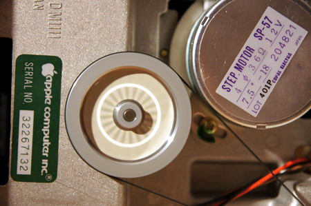 Brancher le floppy sur la carte contrôleur dans l'Apple, positionner le floppy sur le coté comme sur la photo, insérer une disquette non-bootable , exposer la couronne stroboscopique à la lumière d'une vulgaire ampoule puis on allume l'APPLE.