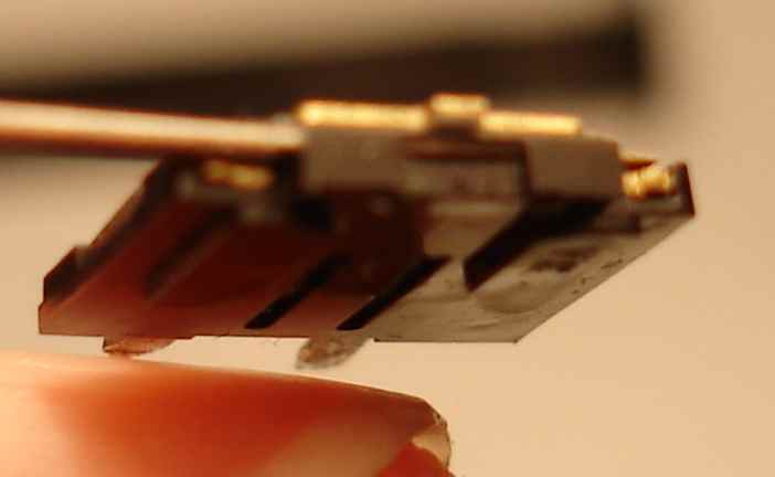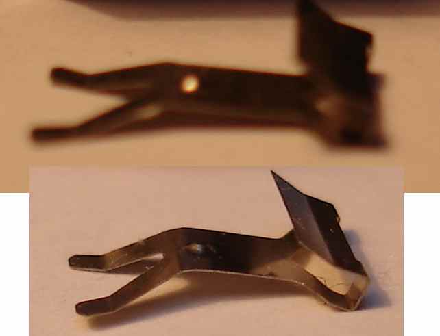Il suffit d'écarter très légèrement (pas plus d'un millimètre) la partie supérieure avec une aiguille et de passer un petit coup de bombe KF contact puis de glisser une petite bande de feuille de papier dans l'espace et lui faire effectuer un mouvement de haut en bas pour bien dégager les éventuelles poussières collées sur les contacts. Le remontage s'effectue sans aucune difficulté, resserrez légèrement le haut de la palette avec une petite pince avant de la remettre en place.