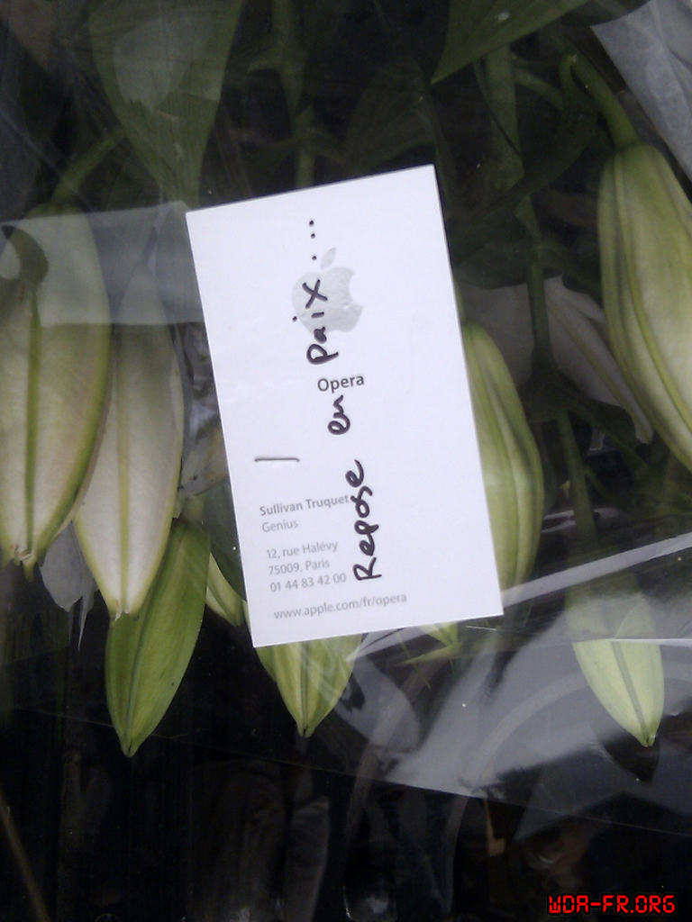 Je suis bien sur allé saluer sa mémoire à l'Apple store Opéra (Paris), le 06/10/2011, en signe de mon profond respect pour ce visionnaire :