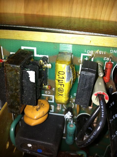 Je n'ai rien pour le changer, mais il est branché sur le secteur, c'est donc du filtrage … je l'enlève, et ça remarche !