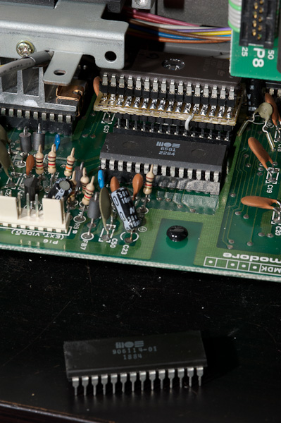 Le-dit circuit ne se trouvant plus en neuf (c'est du spécifique Commodore) j'ai dû utiliser une eprom + un adaptateur pour simuler les fonctions du circuit d'origine.