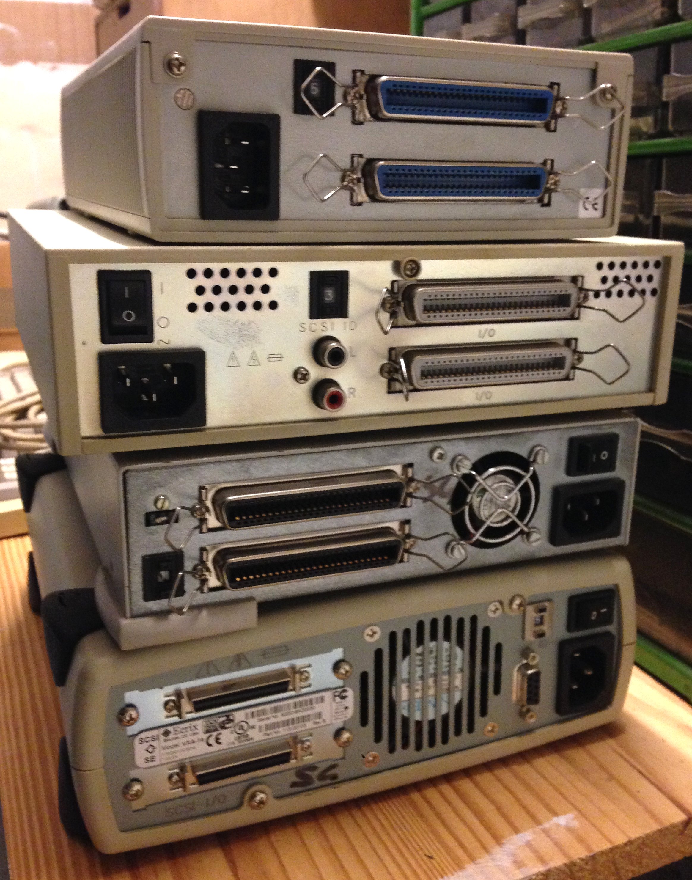 - 2 Disques durs, 1 CD et 1 DAT SCSI, chacun dans son boitier externe avec alim. :