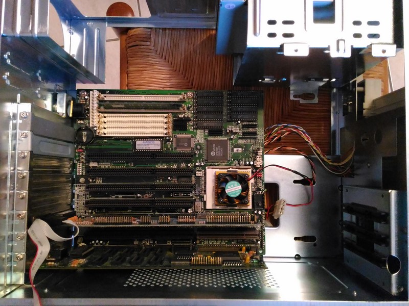 Une jolie carte mère qui était dans le PC familial acheté par mes parents (à Inter Discount!!) en 1995 et mis au rebut en 1998 car un contact de pile BIOS était cassé, je l'ai utilisé durant 7 ans par la suite (en tant que PC d'appoint et test).