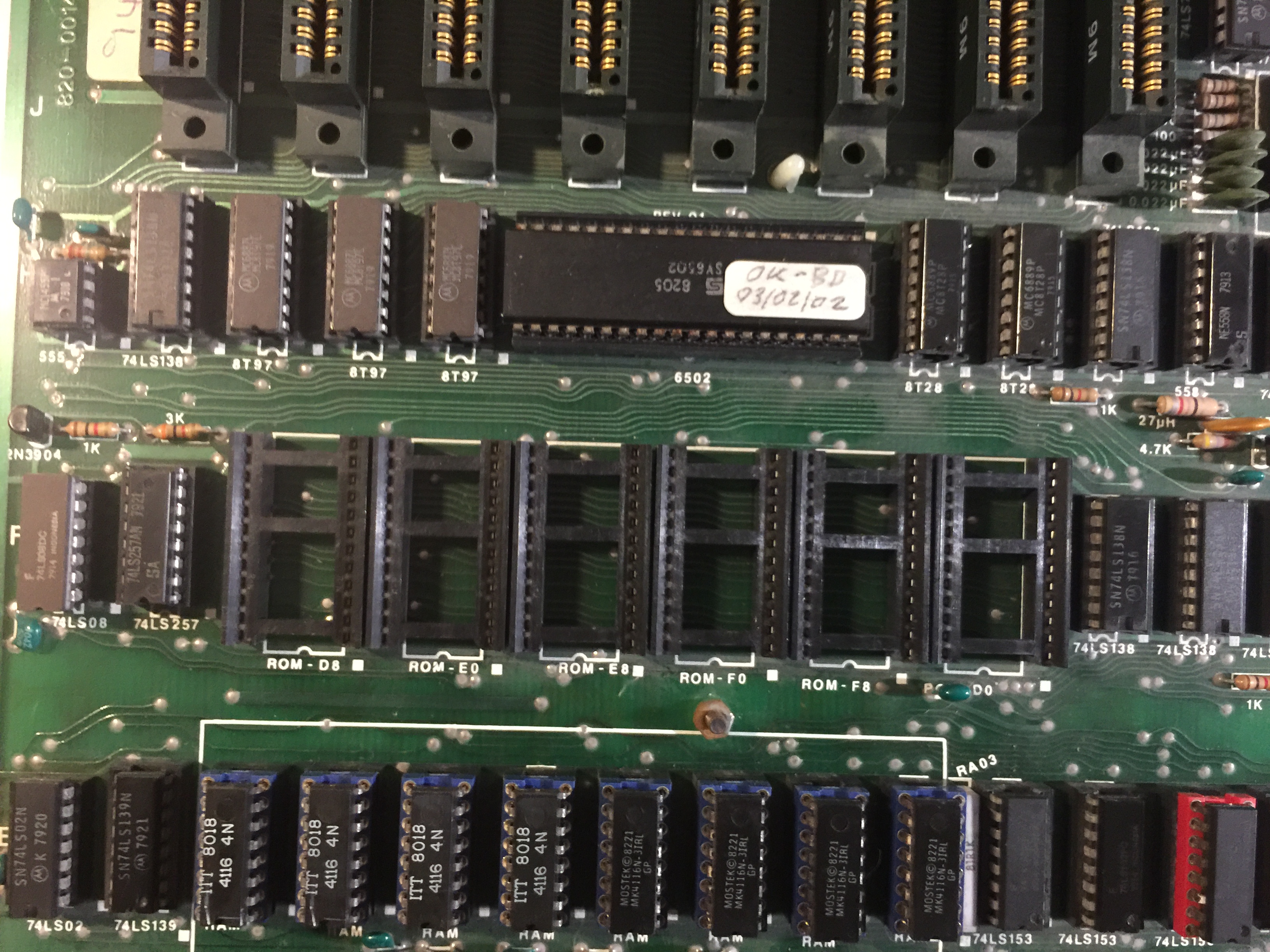 A l’origine il (l’ITT) avait des ROMS, il en restait une dessus, mais apparemment foutue ! En tout ka elle tourne pas sur mon Apple II, je vais essayer de mettre des Rom apple, on verra bien!